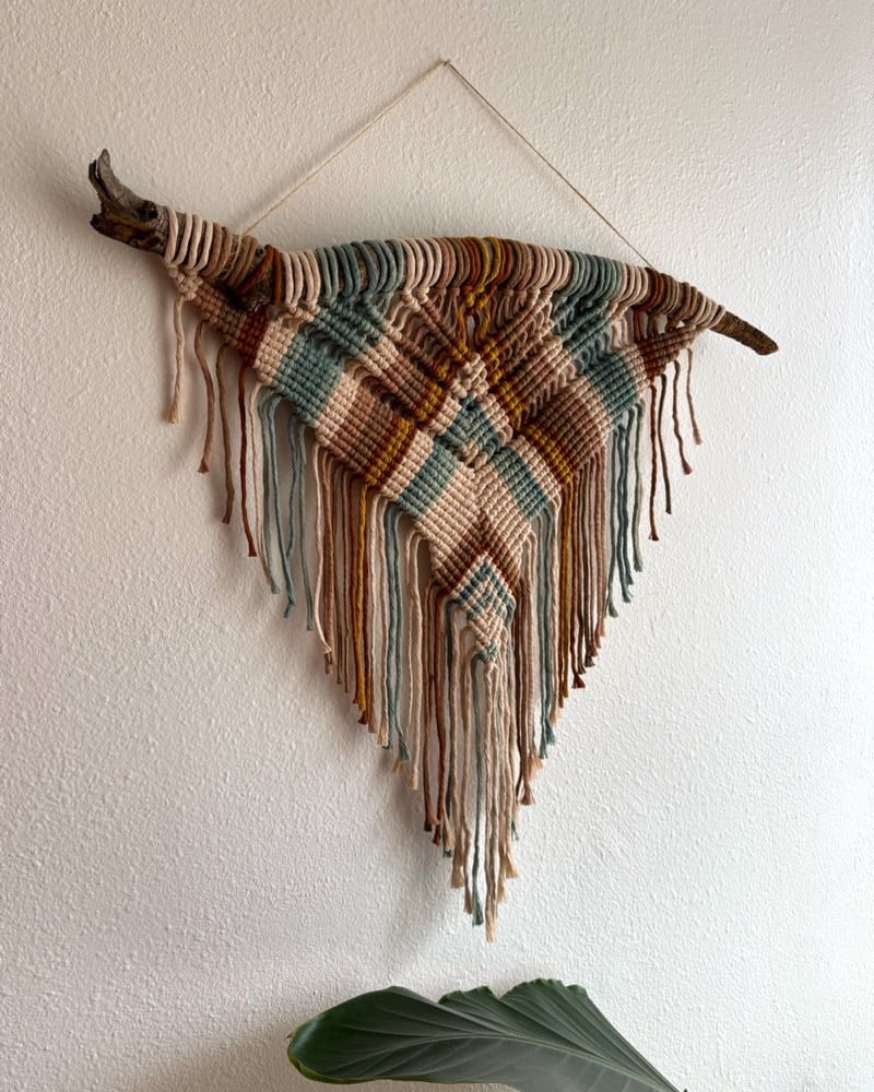 Recycled cotton cord knotted on driftwood